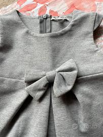 Abito smanicato in felpa con fiocco , colore grigio, mis 9/12 mesi in ottime condizioni