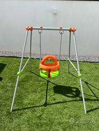 Altalena con struttura in metallo e la sedia in plastica rigida. (Made in Spain) L’altezza è 120 cm. Adatta ai più piccoli , appena bambino comincia a sedersi da solo