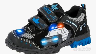 Sneaker basse scarpe ginnastica bambino polizia n.30 si illuminano fari e sirena