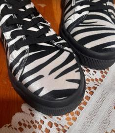 Bellissime e calde sneaker Superga per bimba, suola gomma, velluto stampato animalier, lacci elastici, fodera in micropile n. 31 Nuove Con cartellino colore nero/beige