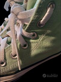 Sneakers alte in tela, perfette per un look casual. N° 35 lunghezza 22 cm Verde acqua - Tomaia in tessuto verde. - Dettagli bianchi a contrasto. - Suola in gomma.