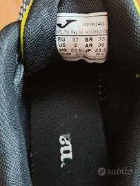 Scarpe da running bambino, mis. 37, in buonissime condizioni (usate poche volte). Presentano solo qualche graffio davanti e qualche scritta sbiadita. Un lembo di uno dei due lacci non ha il rivestimento plastificato.