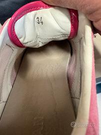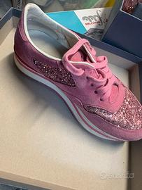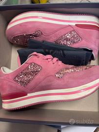 sneakers Hogan originali, modello tipo Interactive, in camoscio rosa con inserti glitter. Scarpe comode ed eleganti, perfette per un look casual ma curato. Numero 34.Usate poche volte, in buone condizioni generali: normali segni di utilizzo su suola e camoscio, glitter integri e ben tenuti. ✅ Originali Hogan ✅ Con scatola originale✅ Lacci originali inclusi✅ Calzata comoda Vendute per inutilizzo.Resto a disposizione per ulteriori foto o informazioni.