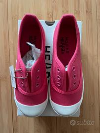 Sneakers in tela di cotone, con elastico e suola in gomma. Color rosa scuro corallo. Nuove mai usate (numero errato). Con etichetta e scatola originale.
