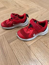 Sneakers Nike Downshifter 10 Rosse E Bianche da Bambino Numero 25. Usate ma in condizioni ancora accettabili, unico difetto significativo è la parte bianca anteriore di entrambe le scarpe rovinata.