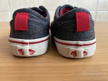 Sneaker bassa grigia con dettagli bianchi e rossi, n.31. Marchio Vans, in tessuto traspirante con caviglia imbottita e suola in gomma.