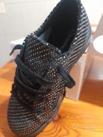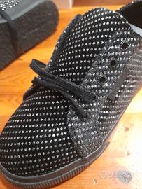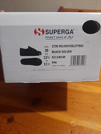 Snaekers bimba Superga nuove con cartellino, nere con glitter, tessuto pesante, stringhe, suola in gomma, n.30 Fodera interna in tessuto in scatola originale
