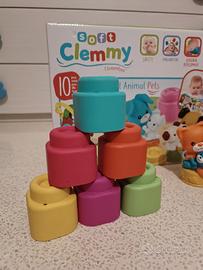 Un playset a tema animali, arricchito da un libricino di cartone illustrato. Il bambino potrà divertirsi a giocare con i teneri personaggi, inventare tante storie con l’aiuto del libro, stimolando la fantasia, l’emotività e il linguaggio. Il set contiene: 6 mattoncini e tre personaggi. I morbidi mattoncini Clemmy aiutano a stimolare la manualità e la sensorialità. Personaggi e Mattoncini sono lavabili in acqua tiepida con un detergente neutro. I Mattoncini Clemmy sono studiati, disegnati e realizzati in Italia.