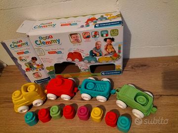 Un morbido trenino completo di locomotiva e vagoni con cui giocare ed esplorare con le mani. Il bambino scoprirà i rilievi, le sue forme, sperimenterà la morbidezza del materiale Clemmy, vivendo un'esperienza sensoriale che lo aiuterà a sviluppare il tatto e la manualità. Con tanti morbidi mattoncini colorati, da incastrare sui vagoni e sulla locomotiva, oppure uno sopra l'altro per creare soffici torri colorate da far cadere, per poi ricostruirle... all'infinito. I vagoni si possono staccare e unire tra di loro facilmente. Le ruote consentono al trenino di muoversi e di trainare il trenino con i suoi vagoni, per inventare tante storie e viaggiare con la fantasia senza limiti. Lavabile in lavastoviglie (70°C max).