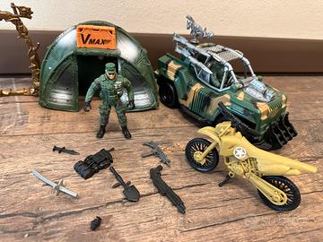 Vendo come da foto, due soldatini, uno è dentro l’auto, più tutti gli accessori visibili più moto