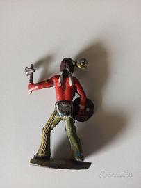 Soldatino Indiano Sioux Lakota scudo ascia Landi Cromoplasto anni 60 Altezza 7 cm.