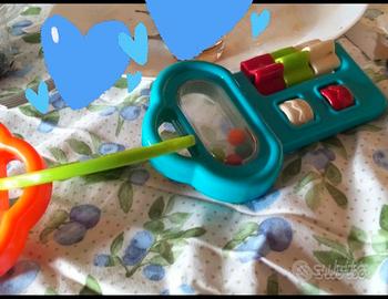 Sonaglio Chicco a forma di chiavi una arancione e l'altra verde .