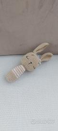 fatto a mano all'uncinetto in cotone, all'interno della testa a forma di coniglio c'è un sonaglino e l'impugnatura è morbida