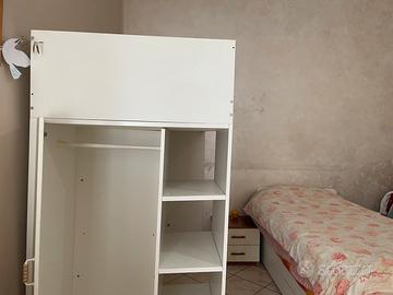 Soppalco bianco, con scrivania e armadio in buone condizioni e con un materasso in regalo