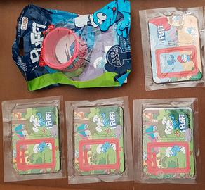 vendo a 5 euro ciascuno i personaggi dei puffi (foto1) che si trovavano nelle uova di pasqua balocco; a 3 euro ciascuno i personaggi preziosi collection (foto2); a 5 euro il braccialetto e a 3 euro ciascuna le cornici magnetiche dei puffi (foto3); a 2 euro ciascuna le gomme pen topper che si trovavano nelle patatine salati preziosi (foto4).