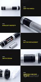 Ogni spada è allungabile ed ha un proprio tasto per attivare luci ed effetti sonori.