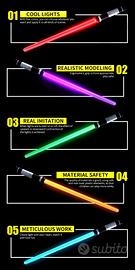 Doppia Spada Laser espandibile sul modello del film "Star Wars", multi colore (vedi dettagli) con effetti sonori.