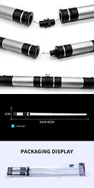 Formata da due spade laser distinte che si posso unire tramite un connettore (incluso) per ottenere una doppia spada.