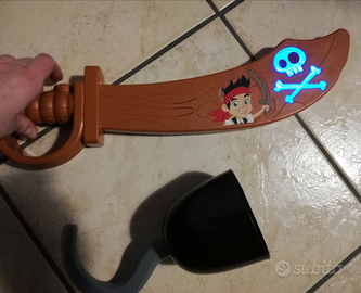Uncino giocattolo e spada magica luminosa di Jake e i pirati. Euro 10 in blocco
