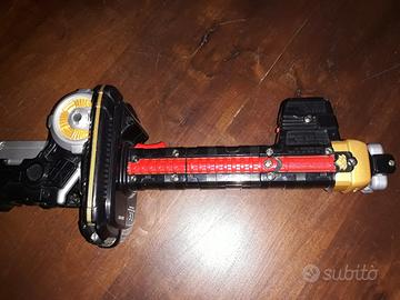 La Mega Spada Power Rangers Super Samurai Deluxe, estraibile e trasformabile, dotata di tantissimi effetti sonori, due modalità di gioco, basta tirare la leva e si trasforma in una maxi spada. Marca GIG Giochi Preziosi.