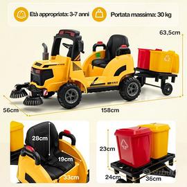 Causa inutilizzo vendo bellissima spazzolatrice elettrica 12 v, per bambini dai 3 ai 7 anni fino a 30 kg di peso. Usata pochissimo , batteria perfetta. Può essere azionato in due modi: con il controllo manuale del bambino o con il telecomando del genitore. I fari luminosi, la musica e il clacson incorporati lo rendono ancora più divertente. Inoltre, la porta USB e il lettore MP3 consentono di collegare dispositivi esterni per ascoltare altra musica. Dotato anche di un carrello rimovibile con 2 cassoni per la spazzatura, istruzioni, telecomando e caricabatteria. vero affare Solo ritiro prezzo leggermente trattabile.