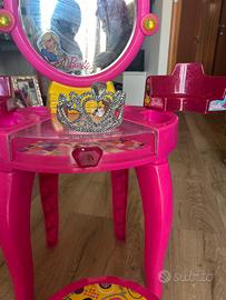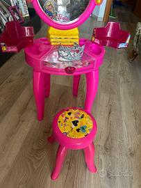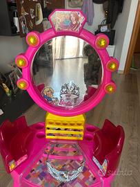 Specchiera gioco per bambine Barbie. Con sgabellino, casettiera, e porta trucchi.