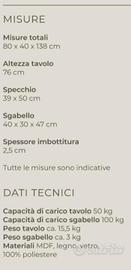 Vendo mobile bianco con specchiera e 5 cassetti con sgabello imbottito. oggetto praticamente nuovo usato pochissimo.