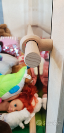 Specchio montessori, con bastoni orizzontali posizionabili a vari livelli, in base all età del bambino.