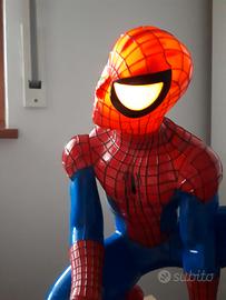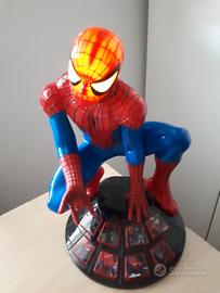Vendo SPIDER-MAN parlante interattivo con luci e suoni la testa la muove e si illumina. Racconta storie in diverse modalità. Modello gigante in ottime condizioni misure alt.cm 32,base diametro cm 20, funziona con 3 pile stilo AA 1,5 volt. La maschera è come nuova ha l'elastico con il velcro per chiudere. Il prezzo è € 20 di tutte e due.