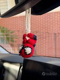 Bellissimo spiderman ad uncinetto per personalizzare la vostra auto o da usare come portachiavi