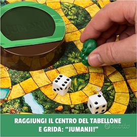 AVVENTURIERI ATTENZIONE: QUESTO GIOCO NON INIZIATE SE NON INTENDETE TERMINARE Jumanji il classico dei giochi da tavolo che permette di giocare in famiglia o con gli amici, da un minimo di 2 fino a un massimo di 4 giocatori, per divertirsi sfidando parenti e amici Adatto a bamini dagli 8 anni in su, porta voi e i vostri compagni di avventura in una missione attraverso la giungla, risolvendo enigmi e completando sfide mentre cercate di non perdere i vostri Gettoni Vita