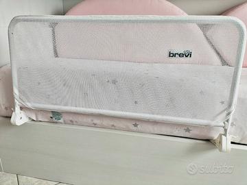 Vendo spondina di sicurezza per letto marca Brevi, lunghezza 90 cm, colore neutro (adatta sia per maschietti che femminucce). Ideale per evitare cadute durante il sonno, struttura solida e pieghevole. Facile da montare e smontare. Piccolo segno di usura sull’angolo sinistro, ma perfettamente funzionante e sicura.