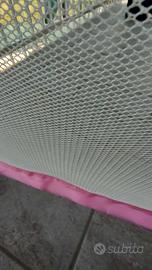 Barriera di sicurezza pieghevole dotata di un pulsante su ciascuno lato , la barriera può essere piegata con facilità per poter mettere a letto il bambino/a , o per toglierlo/a. Pari al nuovo non presenta nessun difetto.