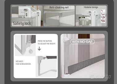Color Grigio, Barriera Di Sicurezza a Scomparsa, Protezione Alta, Sicura e di 3 Generazione (Grigia, Lunghezza 180 cm)