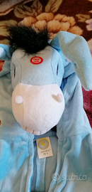 Tuta intera in pile con cerniera frontale, cappuccio raffigurante asinello cantante con pulsante "we are the champ" in traduzione "noi siamo campioni", coda asinello posteriore costo 20euro
