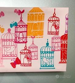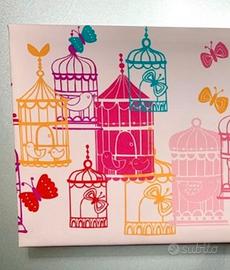 Stampa su tela per cameretta bambina ?? a tema gabbiette per uccellini e farfalle Misura cm 54x27 ( spessore cm 2,5)