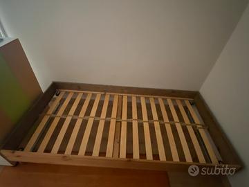 - 2 letti singoli : 1 ( 2x2mx90) con sbarre tutto intorno al letto per evitare le cadute che si possono rimontare al bisogno (non presente in foto perche il letto e utilizzato da un bambino di 12 anni) + 1 estraibile con ruote (1.90x90) che si incastra sotto il piu grande.