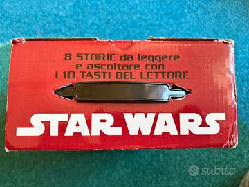 Vendo confanetto contenente 8 libretti di Star Wars che possono essere letti anche tramite apposito lettore vocale. Libro elettronico. Ogni libro ha il suo titolo e ogni coppia di pagine ha il suo simbolo (vedi foto). Rarità da collezione per appassionati e collezionisti di Star Wars. Ascoltato forse un paio di volte perchè i figli non si sono appassionati a Star Wars. Quindi la confezione esterna di cartone presenta segni di usura (come da foto) mentre gli 8 libretti e il lettore sono nuovi. Non presentano difetti nè imperfezioni. Editore Giunti. Specifiche: Libri bambini - Star Wars: 8 libretti con lettore per ascoltare le storie - Titoli dei libretti: 1. Un messaggio nascosto 2. Missione salvataggio 3. Addestramento Jedi 4. È una trappola! 5. Il ritorno dello Jedi 6. La battaglia finale 7. Eroi ribelli 8. Il malvagio Impero Ogni libretto contiene 20 pagine illustrate Copertine rigide Testo in italiano Dal sito dell’editore: Un libro elettronico per i bambini dai 4 anni in su che coniuga l'apprendimento della lettura con il divertimento. Dopo aver scelto la storia preferita, è possibile ascoltarne la narrazione, arricchita da effetti sonori e musicali. Il cofanetto di cartone con maniglia contiene 8 divertenti storie dedicate agli episodi della saga di Star Wars. Edizione difficile da trovare, costa 49,99€. Vendo a €19. Nel mio profilo sono presenti altri prodotti: se vengono acquistati più prodotti insieme, di qualunque genere, ci sarà un ulteriore sconto.