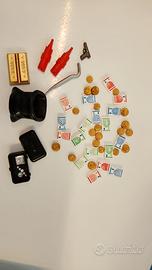 Gioco con cassaforte super protetta, tornello mobile, manopole con combinazione e fessure sul retro da usare come salvadanaio, banconote, monete e diamanti, 1 ladro con piede di porco, dinamite, sacco e borsa con attrezzi, 1 poliziotto con pistola e torcia super attento e senza paura.....