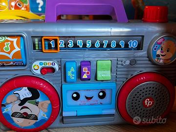 Attività divertenti ed entusiasmanti, con un altoparlante rotante, uno sportello delle cassette che si apre e si chiude, un selettore, un interruttore a levetta, un rullo, un sonaglino e molto altro