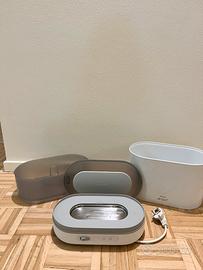 Occupa poco spazio, facile da pulire, sterilizza in pochissimo tempo e mantiene sterili i prodotti all’interno fino a 24h se non si alza il coperchio.