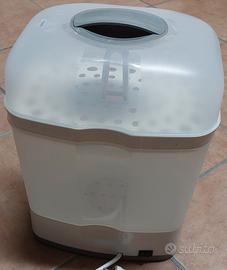 Sterilizzatore Chicco. In ottimo stato. CHICCO STERILNATURAL Descrizione Sterilizzatore a vapore modulare, due configurazioni, efficace e facile da usare, di dimensioni modulari: è possibile scegliere tra 2 diverse configurazioni per regolare le dimensioni dello sterilizzatore in base agli oggetti da sterilizzare, sterilizza in modo efficace in 5 minuti: elimina il 99,9% dei germi domestici nocivi grazie al solo vapore naturale senza nessuna sostanza chimica, la protezione dura 24 ore, gli oggetti rimangono disinfettati se il coperchio rimane chiuso si spegne automaticamente a fine ciclo.