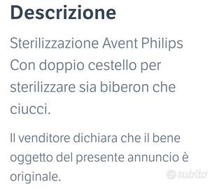 sterilizzatore Avent Philips con doppio cestello per sterilizzare biberon e ciuccio