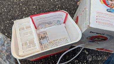 BREVI STERILIZZATORE A VAPORE VIVALAPAPPA COD.351. Lo Sterilizzatore elettrico universale a vapore Brevi è adatto alla sanitizzazione naturale (temperatura del vapore) di biberon, succhietti e accessori per l’allattamento dei bambini. Usato una decina di volte e poi messo in cantina. é ancora in ottime condizioni. Imballo originale con la scatola di cartone che presenta piccole ammaccature.