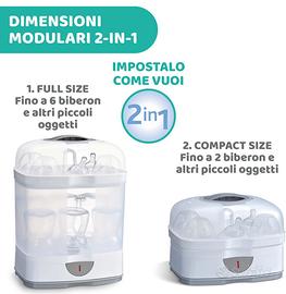 Sterilizzatore CHICCO 2 in 1. Sterilizza in 5 al 99.9%. Componibile e fino a 6 biberon all’ interno. Vendo per inutilizzo in ottime condizioni come nuovo. Per info contattatemi