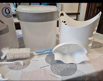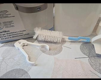 SterilBoxCaratteristiche: disinfetta accuratamente tutti gli oggetti del bambino. Contiene fino a 6 biberon con relativi accessori da posizionare nell’apposito vano. Il kit comprende: disinfettante New Sterilsistem 150 ml, scovolino, pinza igienica. Utile anche per la disinfezione di frutta e verdura.
