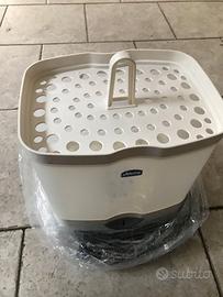 Sterilizzatore Chicco per biberon e ciucci , a vapore modulare, due configurazioni, efficace e facile da usare, di dimensioni modulari: è possibile scegliere tra 2 diverse configurazioni per regolare le dimensioni dello sterilizzatore in base agli oggetti da sterilizzare, sterilizza in modo efficace in 5 minuti: elimina il 99,9% dei germi domestici nocivi grazie al solo vapore naturale senza nessuna sostanza chimica, la protezione dura 24 ore, gli oggetti rimangono disinfettati se il coperchio rimane chiuso si spegne automaticamente a fine ciclo Come NUOVO ancora nella confezione originale