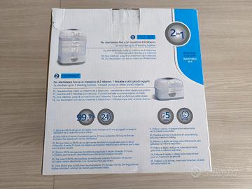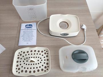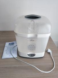 Vendo per inutilizzo, sterilizzatore chicco, a due ripiani, sterilizzatore rapida in 5 minuti, dimensioni modulari, sterilizza in full size 6 biberon, in modalità compatta 2 biberon, 1 tiralatte o altri piccoli oggetti. Tondino di acciaio leggermente macchiato ma si riesce a pulire dopo sterilizzazione con un cucchiaino di acido citrico.