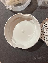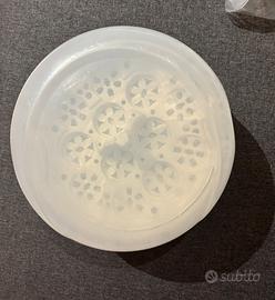 Sterilizzatore per ciucci e tettarelle. - Coperchio trasparente in plastica. - Base bianca in plastica. - Usato poco, é in perfette condizioni.