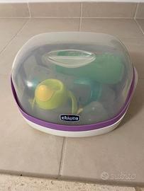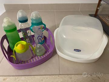 sterilizzatore da microonde chicco + biberon vetro e plastica e bicchiere